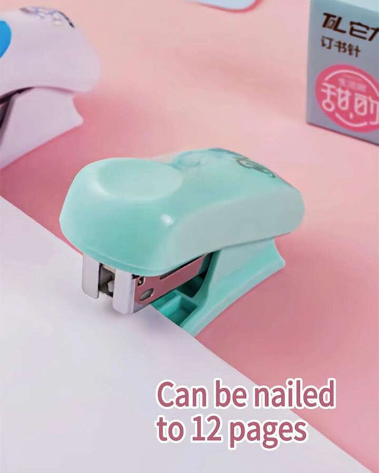 دباسة صغيرة ألوان مع علبة دبابيس - تركواز