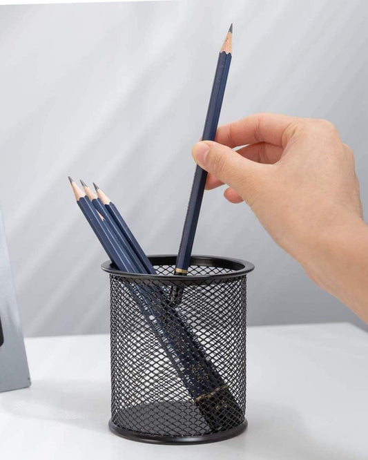 كوب أقلام معدن شبك دائري - أسود