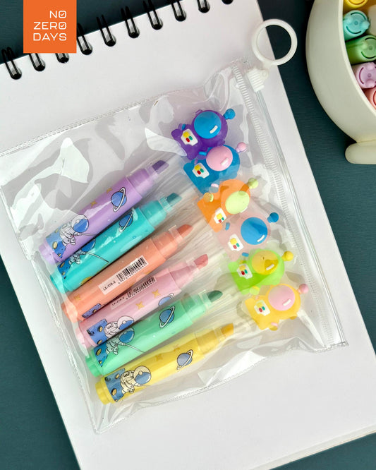 مقلمة أقلام هايلايتر 6 ألوان - رجل فضاء
