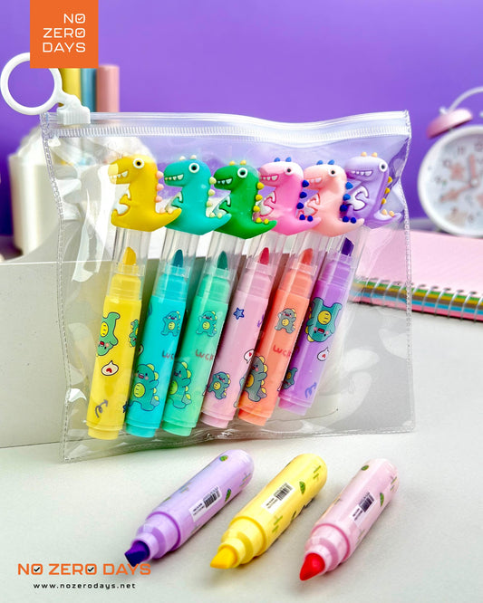 مقلمة أقلام هايلايتر 6 ألوان - ديناصور