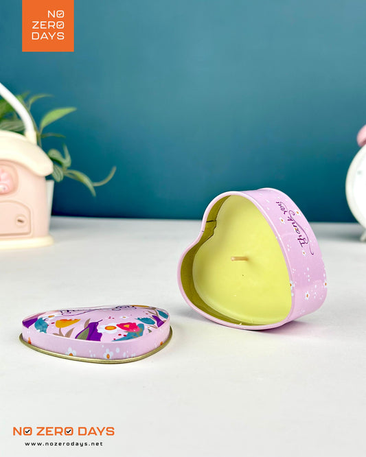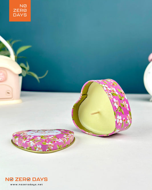 شمعة عطرية في علبة معدن شكل قلب - زهري