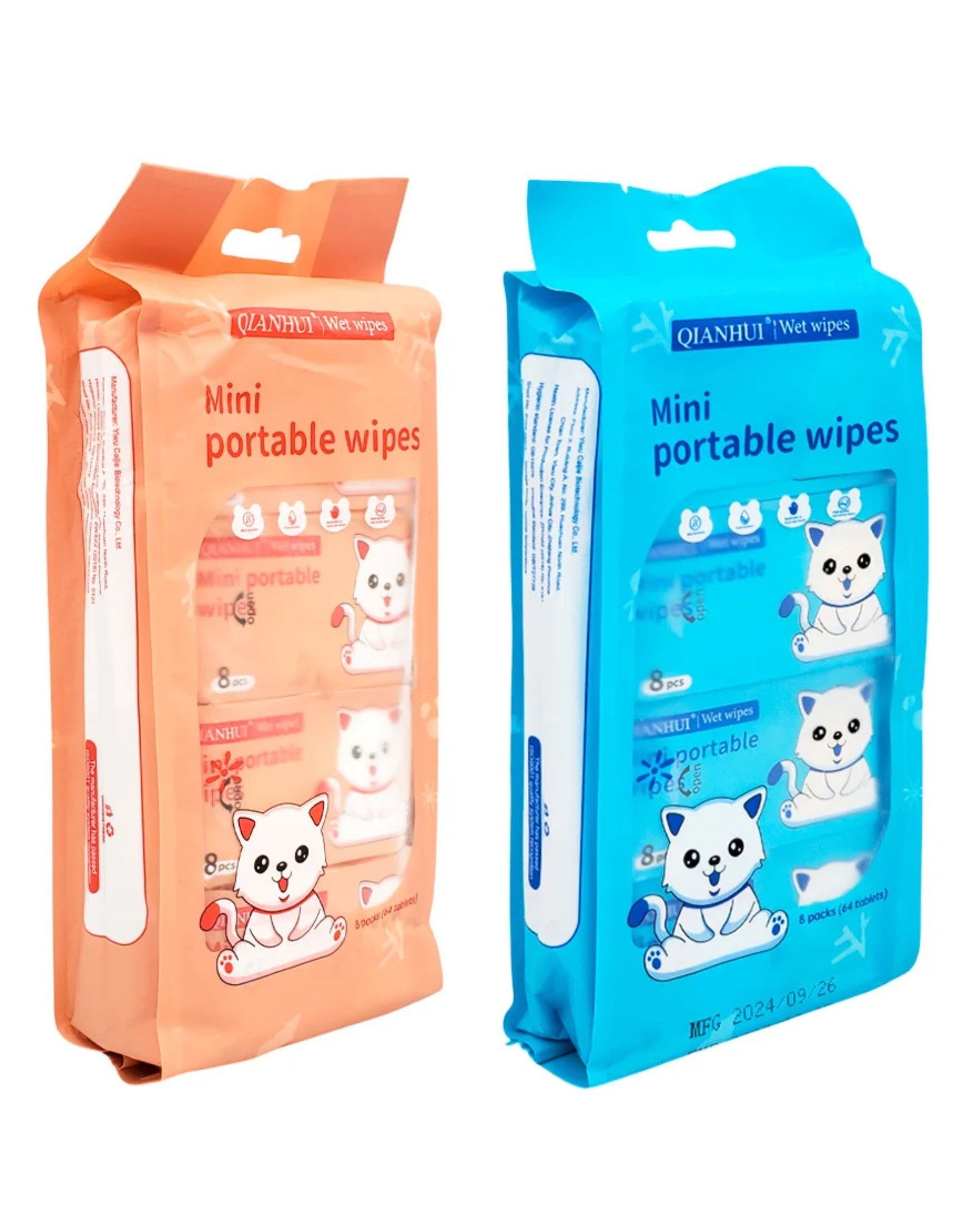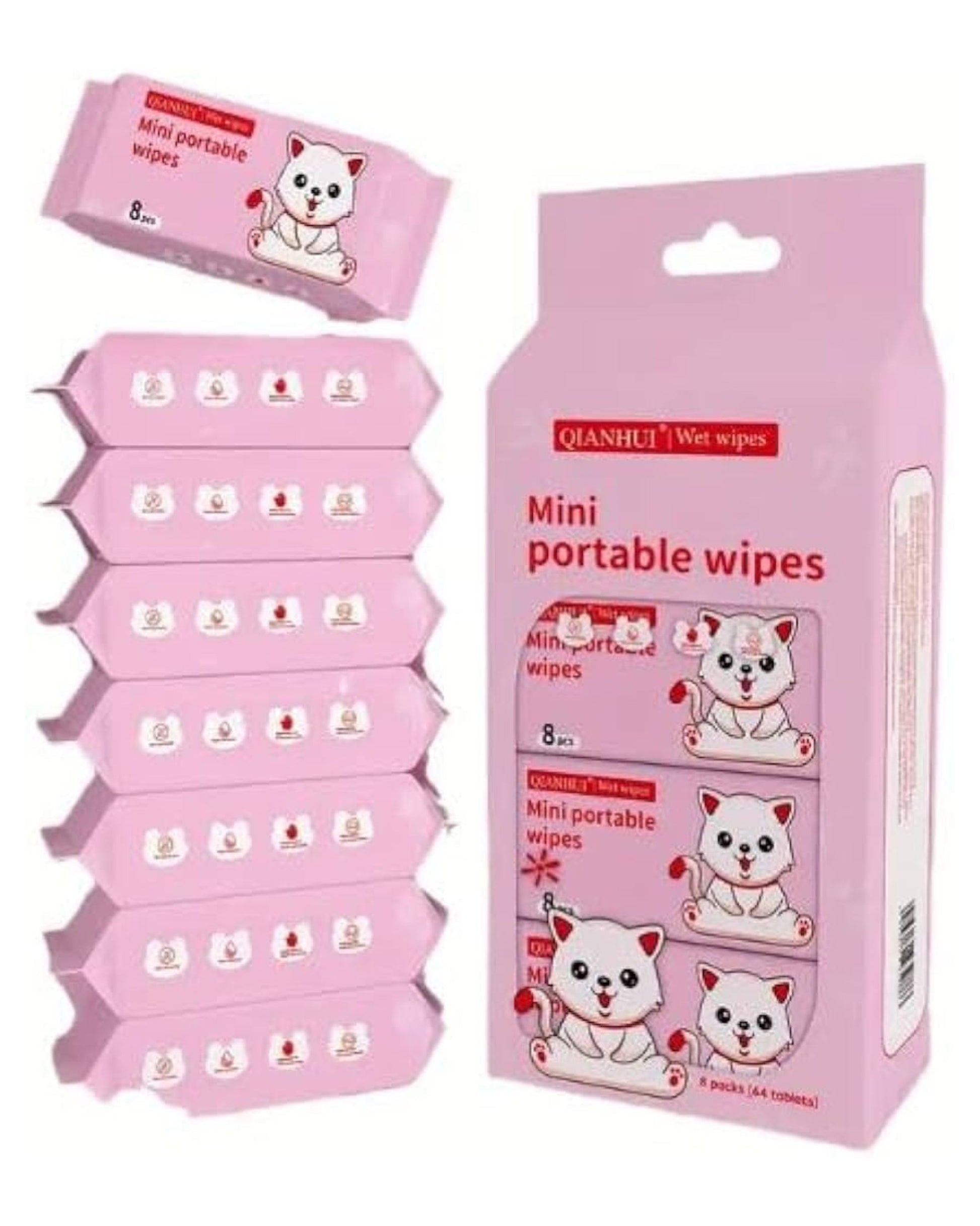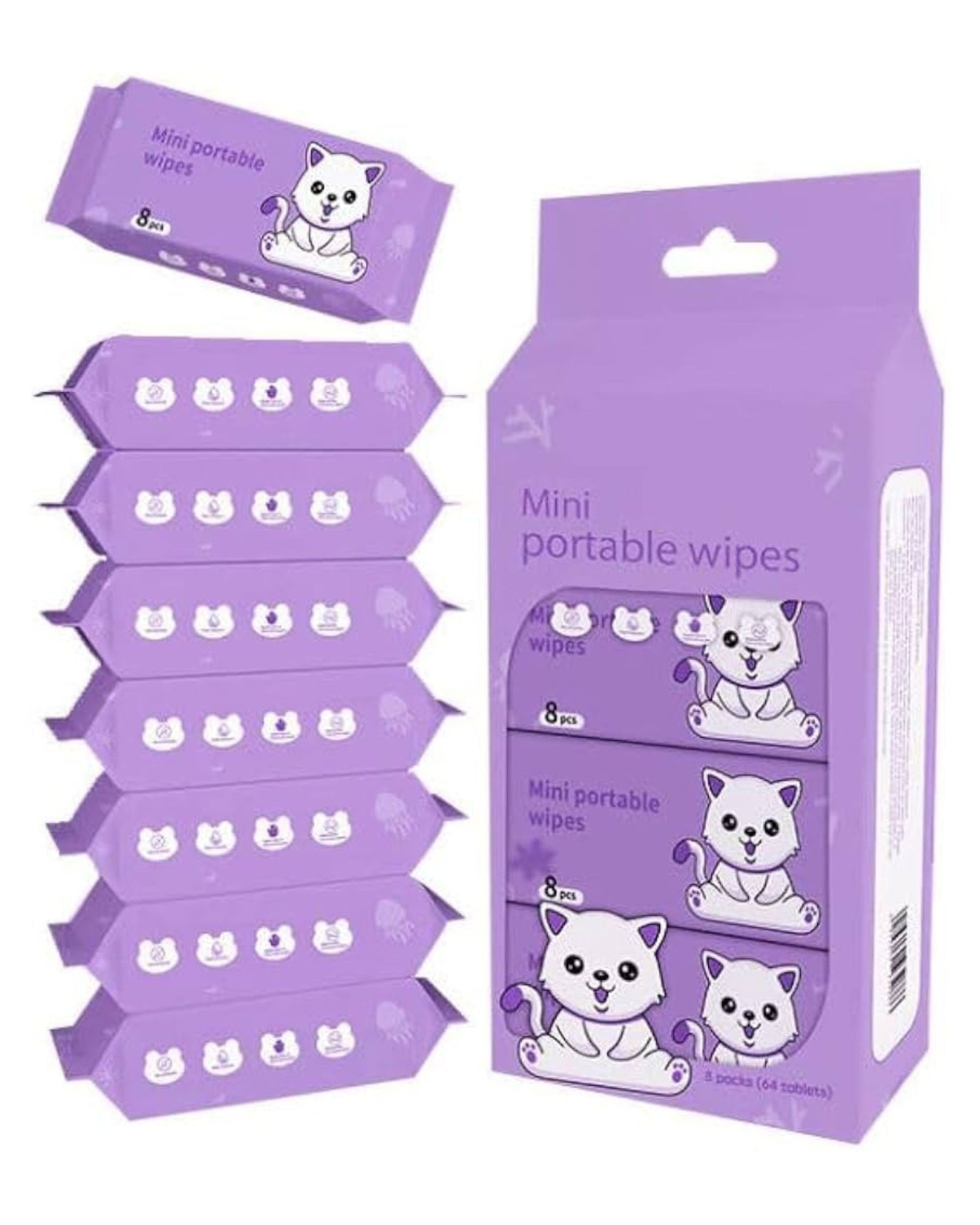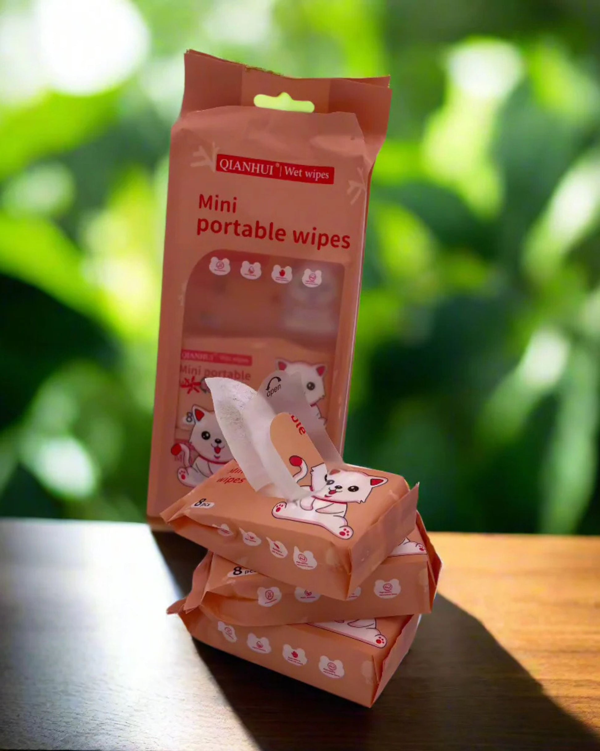 - مناديل مبللة ناعمة وصغيرة لتنظيف اليدين
