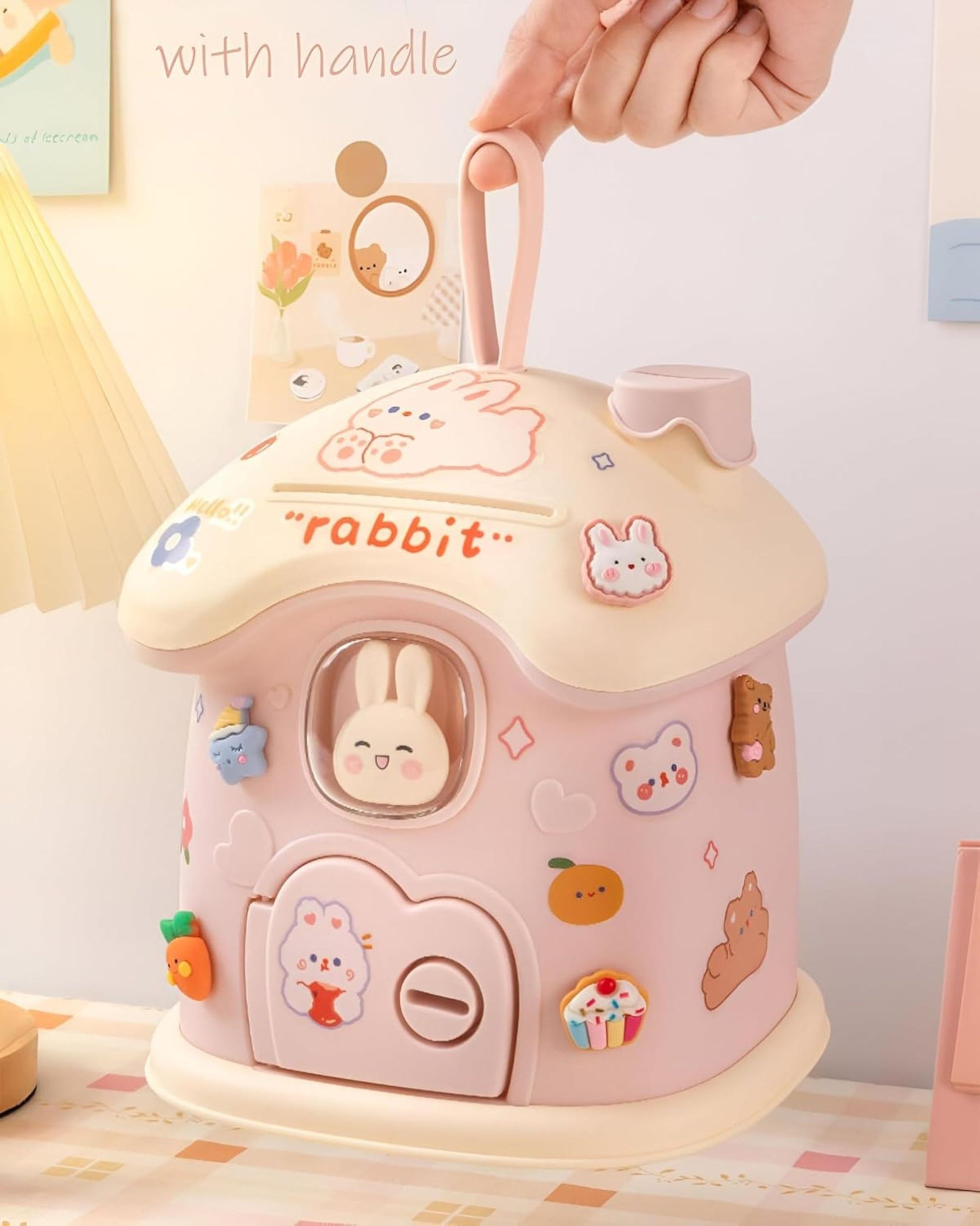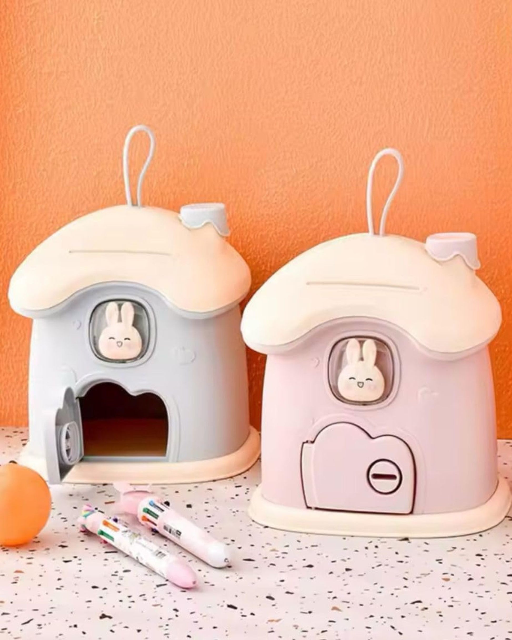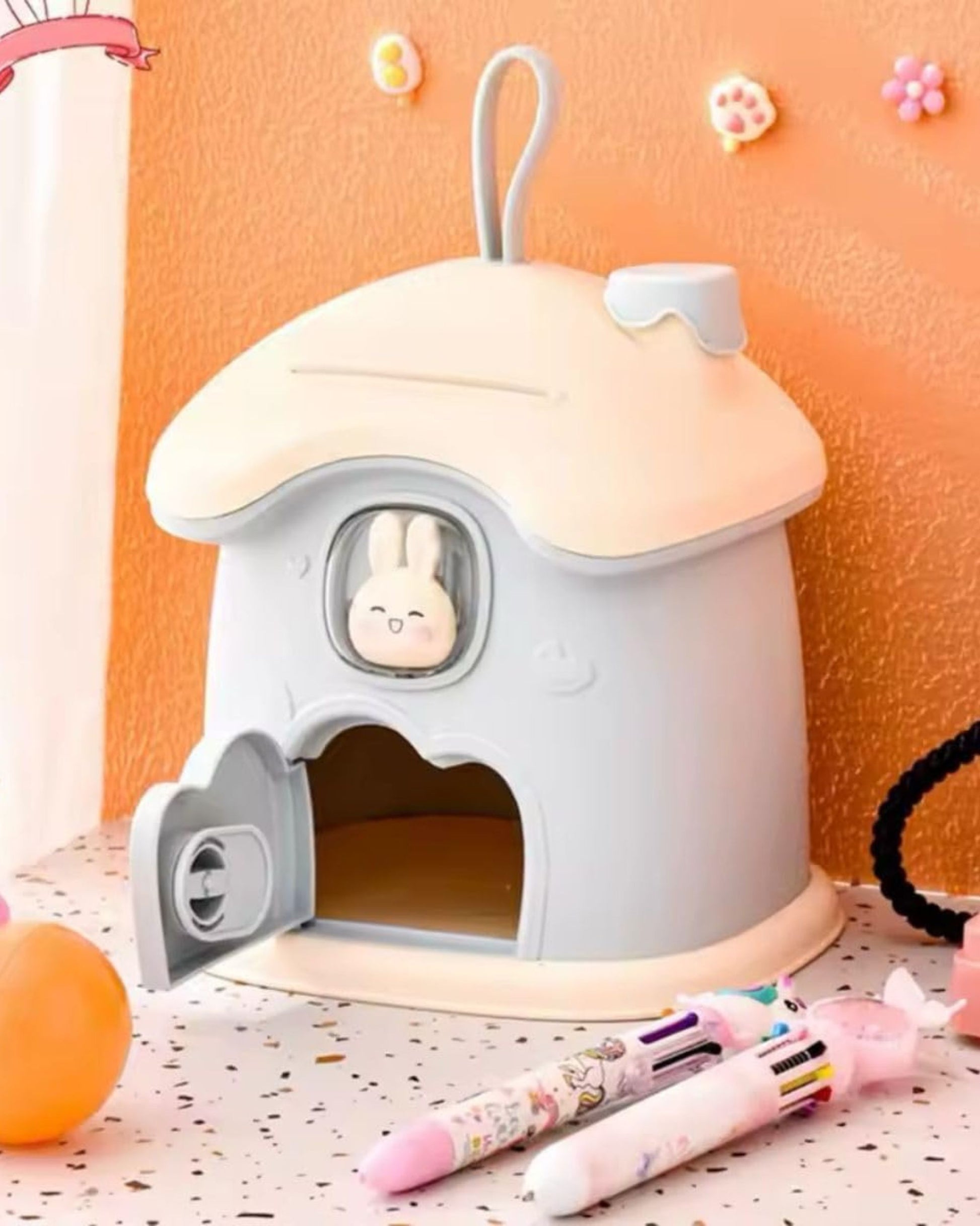 - حصالة شكل كوخ أرنوب مصنوعة من البلاستيك عالي الجودة
