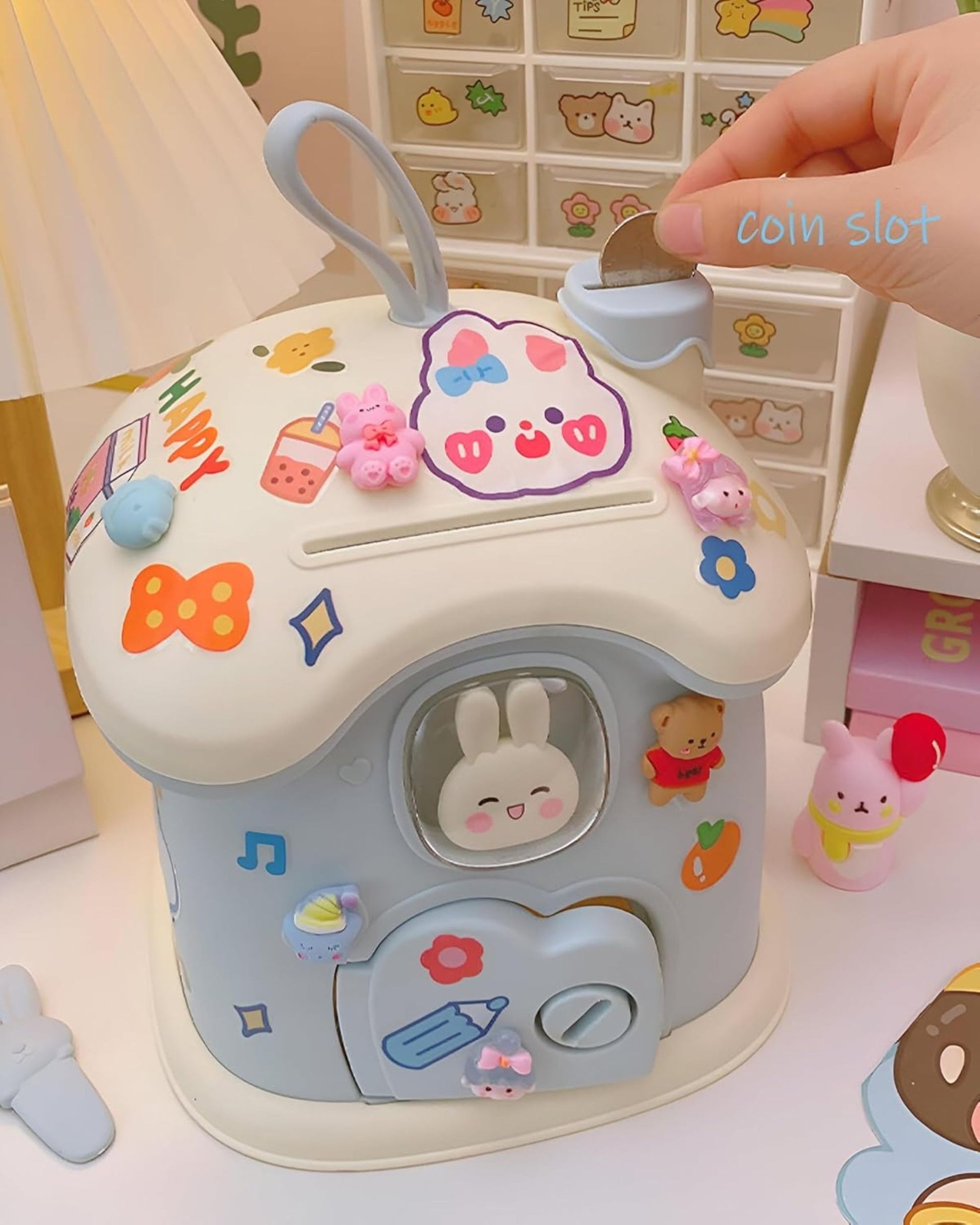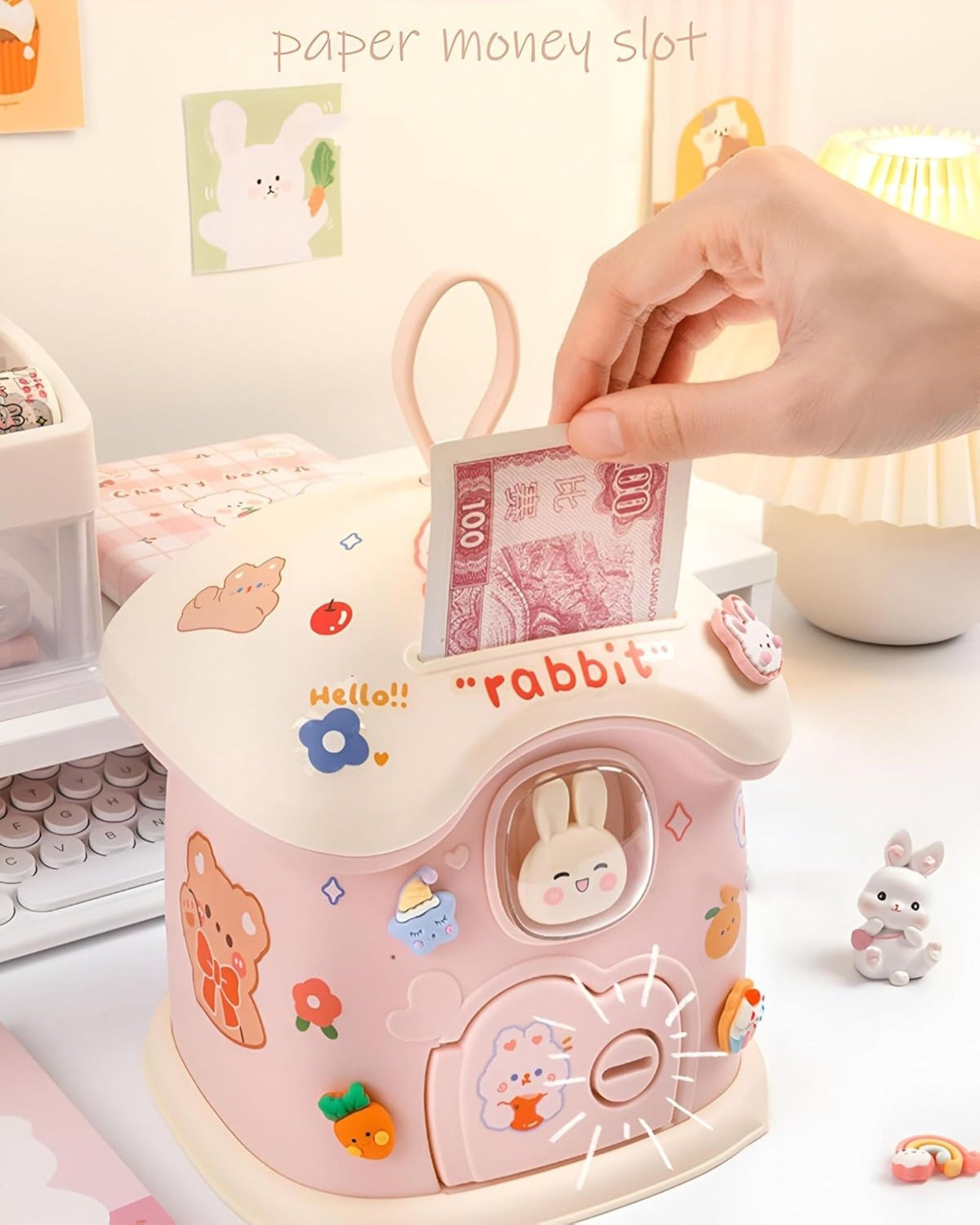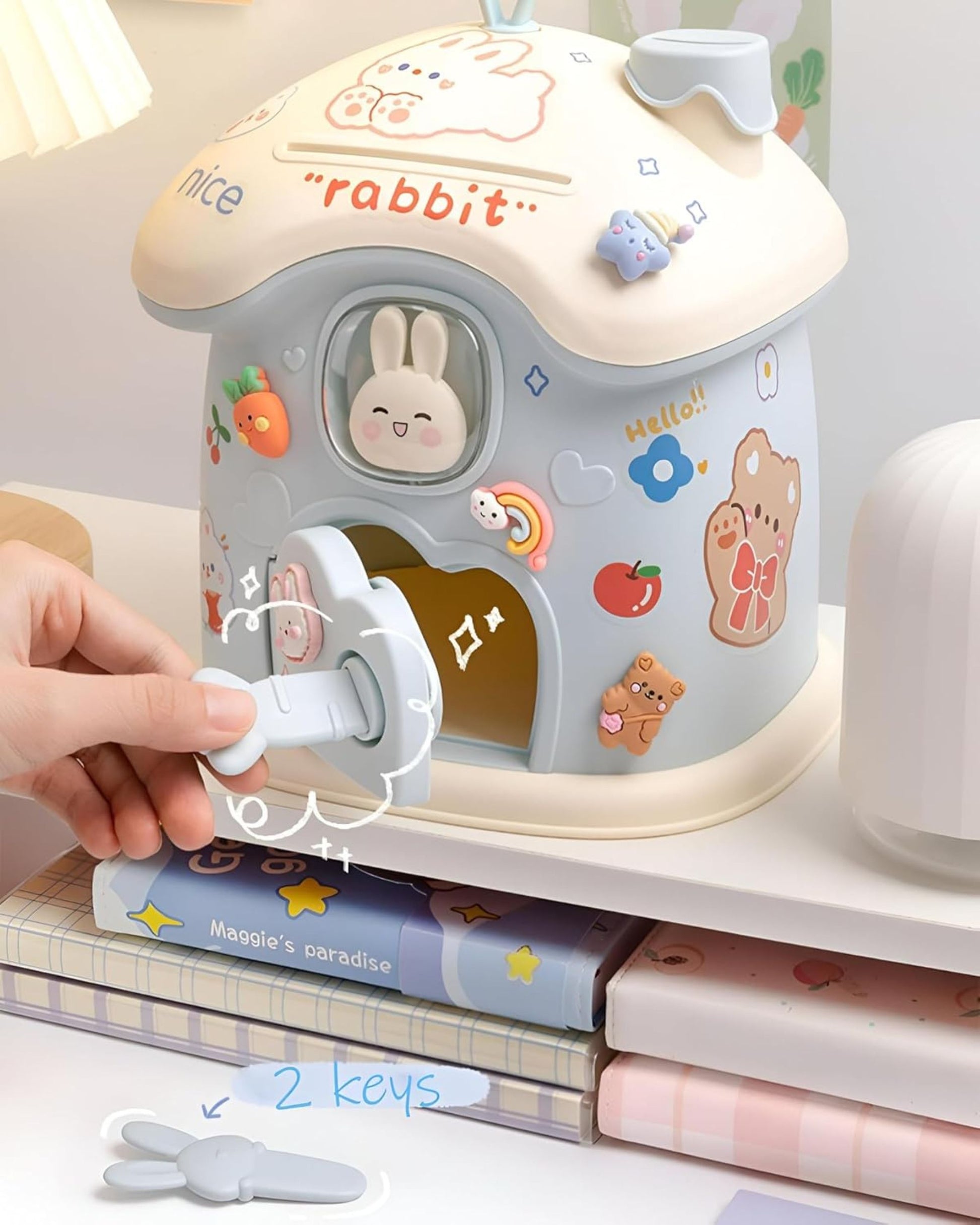 - حصالة شكل كوخ أرنوب مصنوعة من البلاستيك عالي الجودة