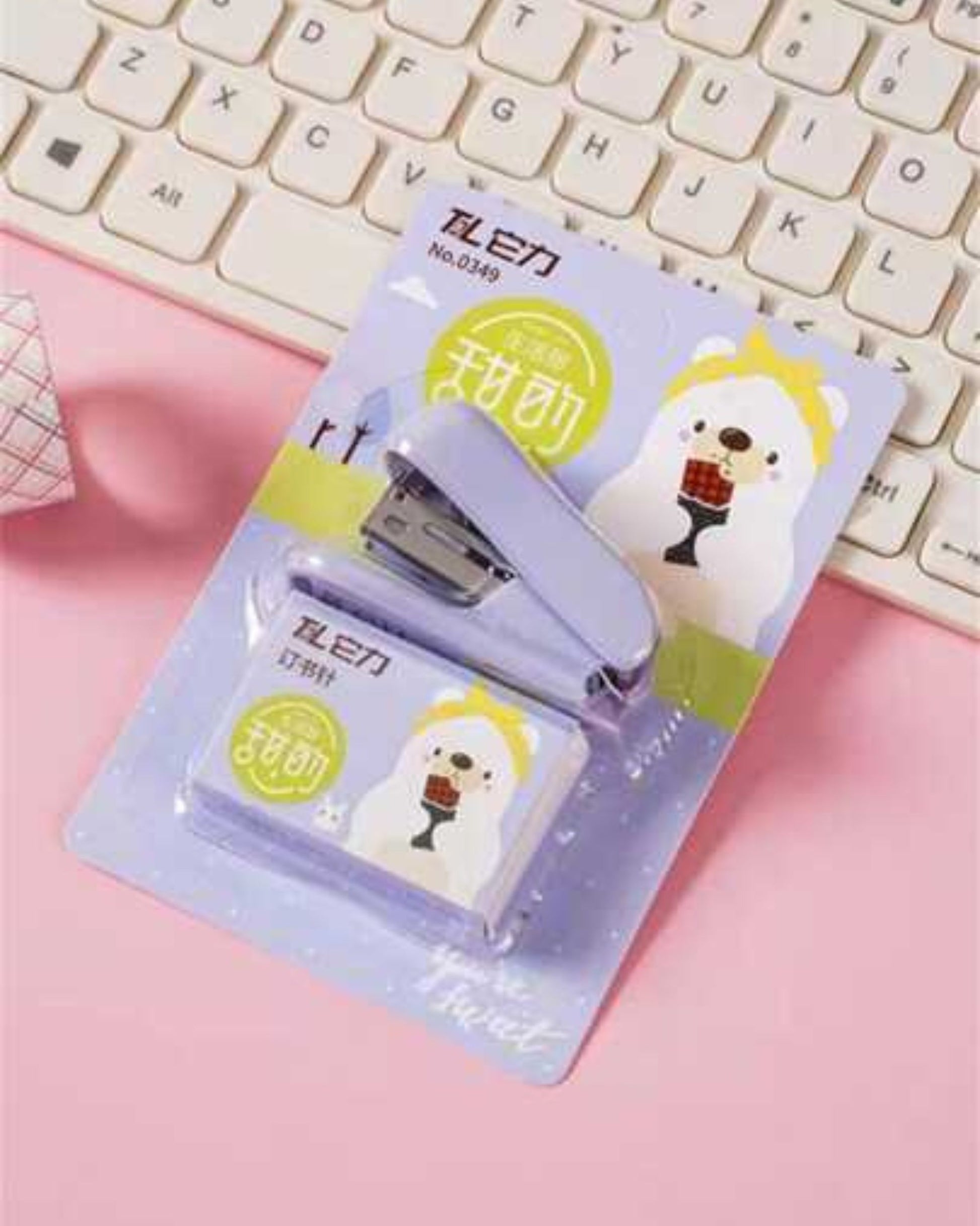 دباسة صغيرة ألوان مع علبة دبابيس - بنفسجي