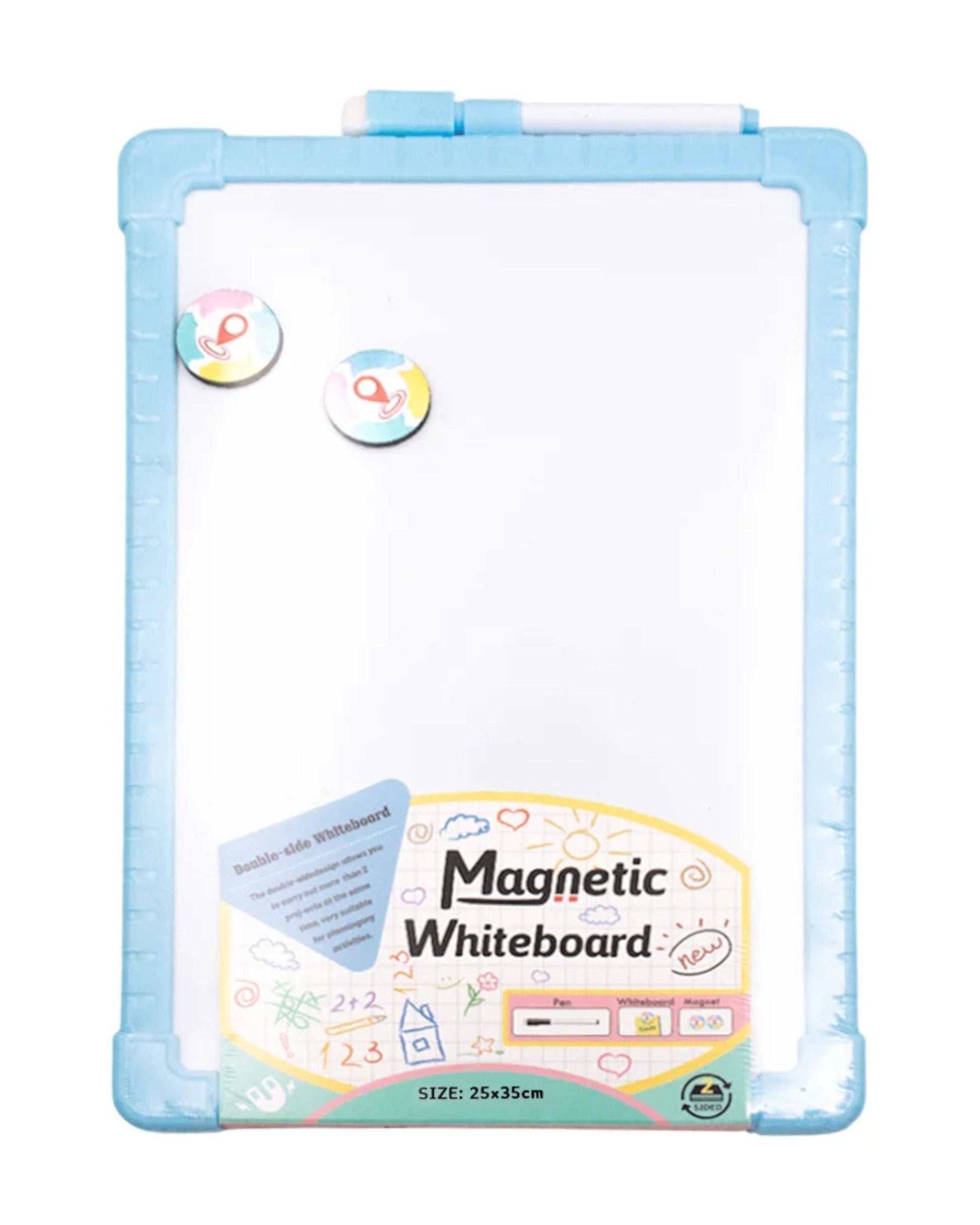 سبورة بيضاء وجهين 25x35 مع قلم ومغناطيس - أزرق