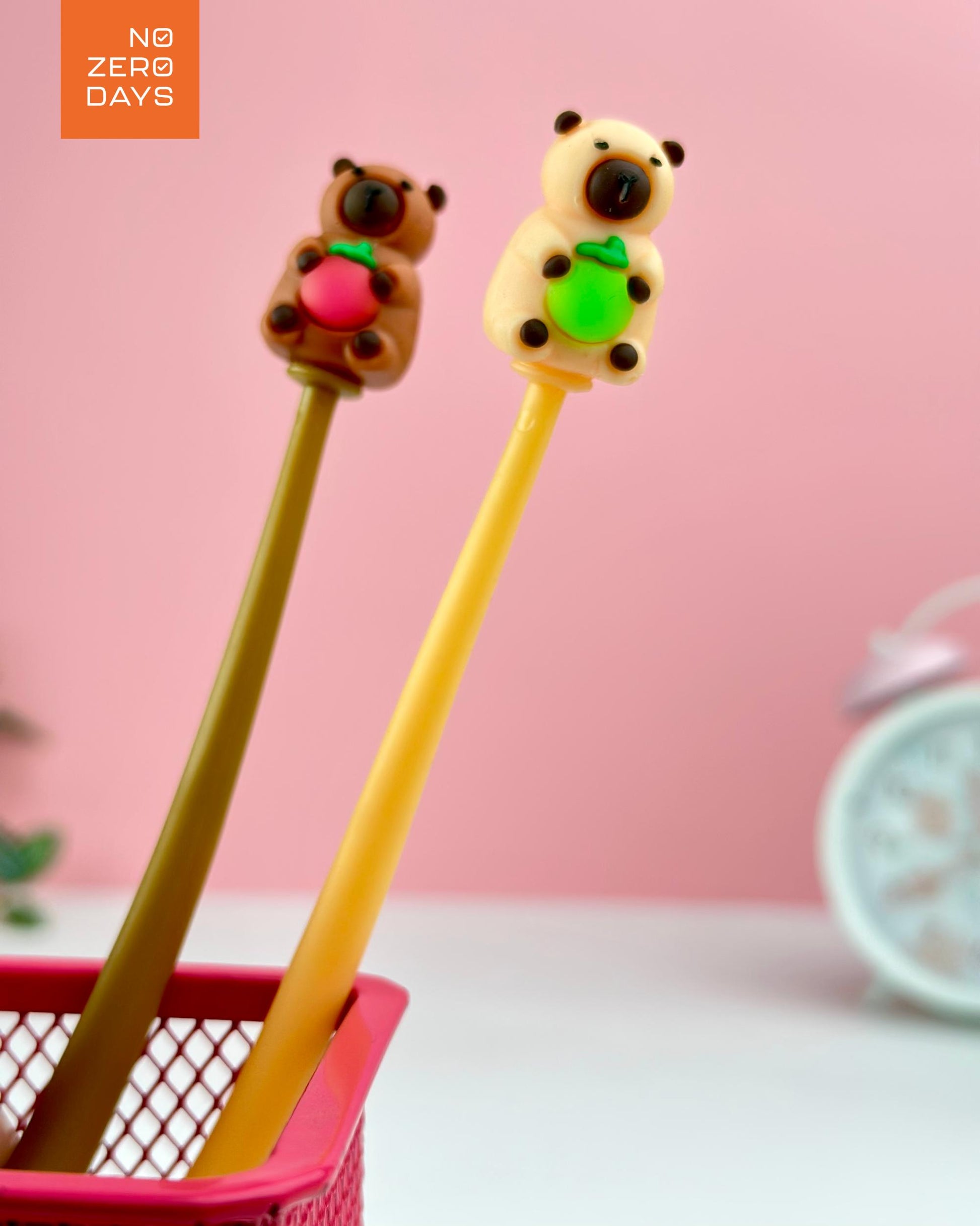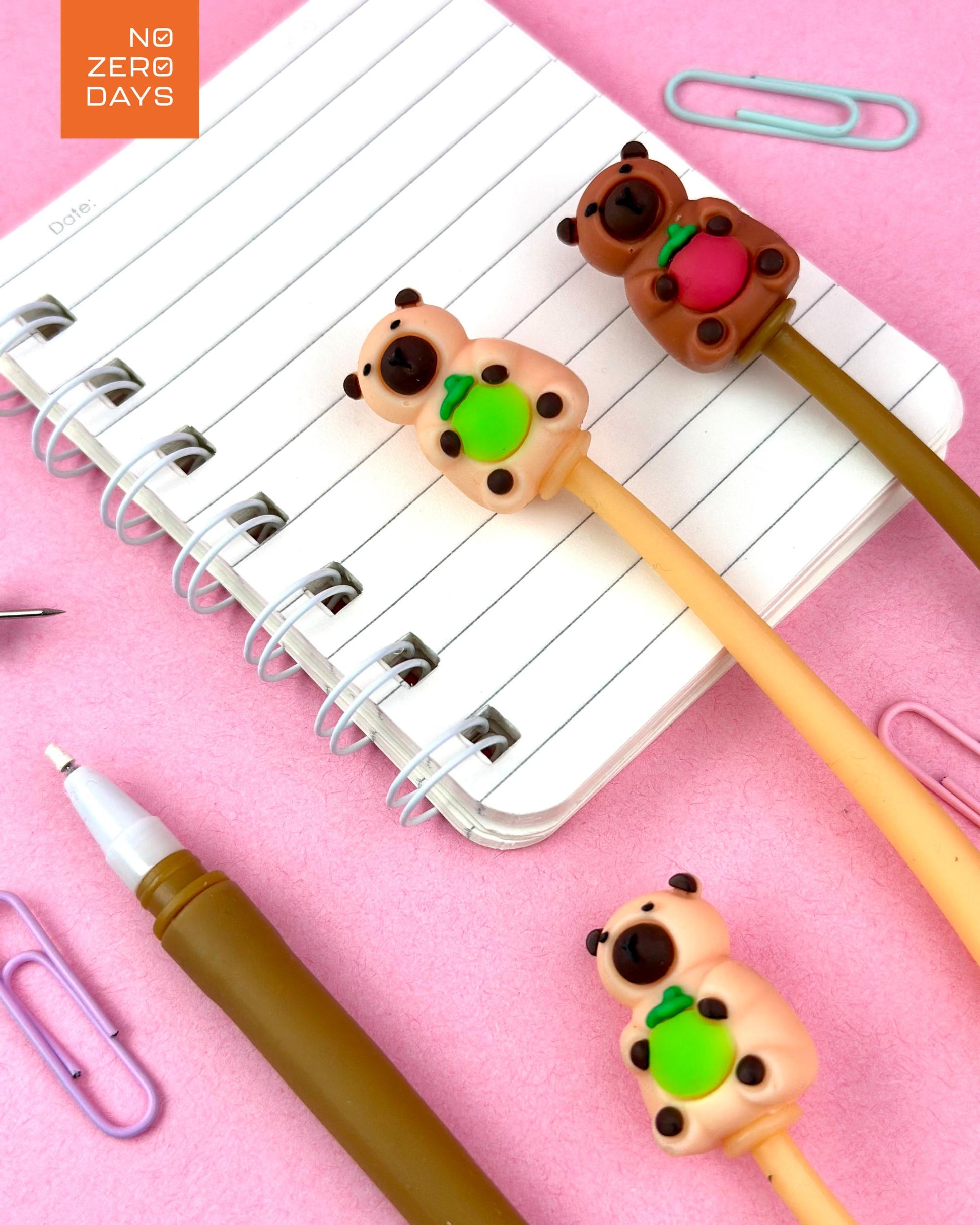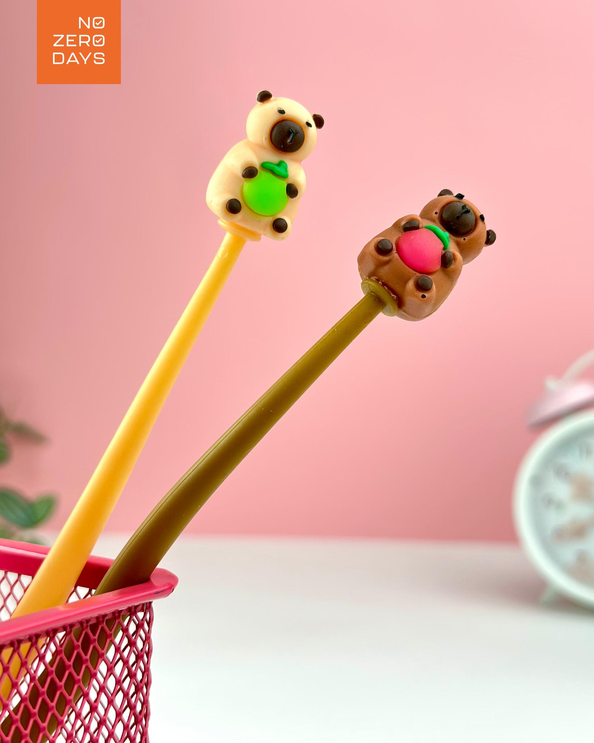 قلم حبر جاف أزرق بمجسم من السليكون المطاطي الناعم على شكل ( دب )