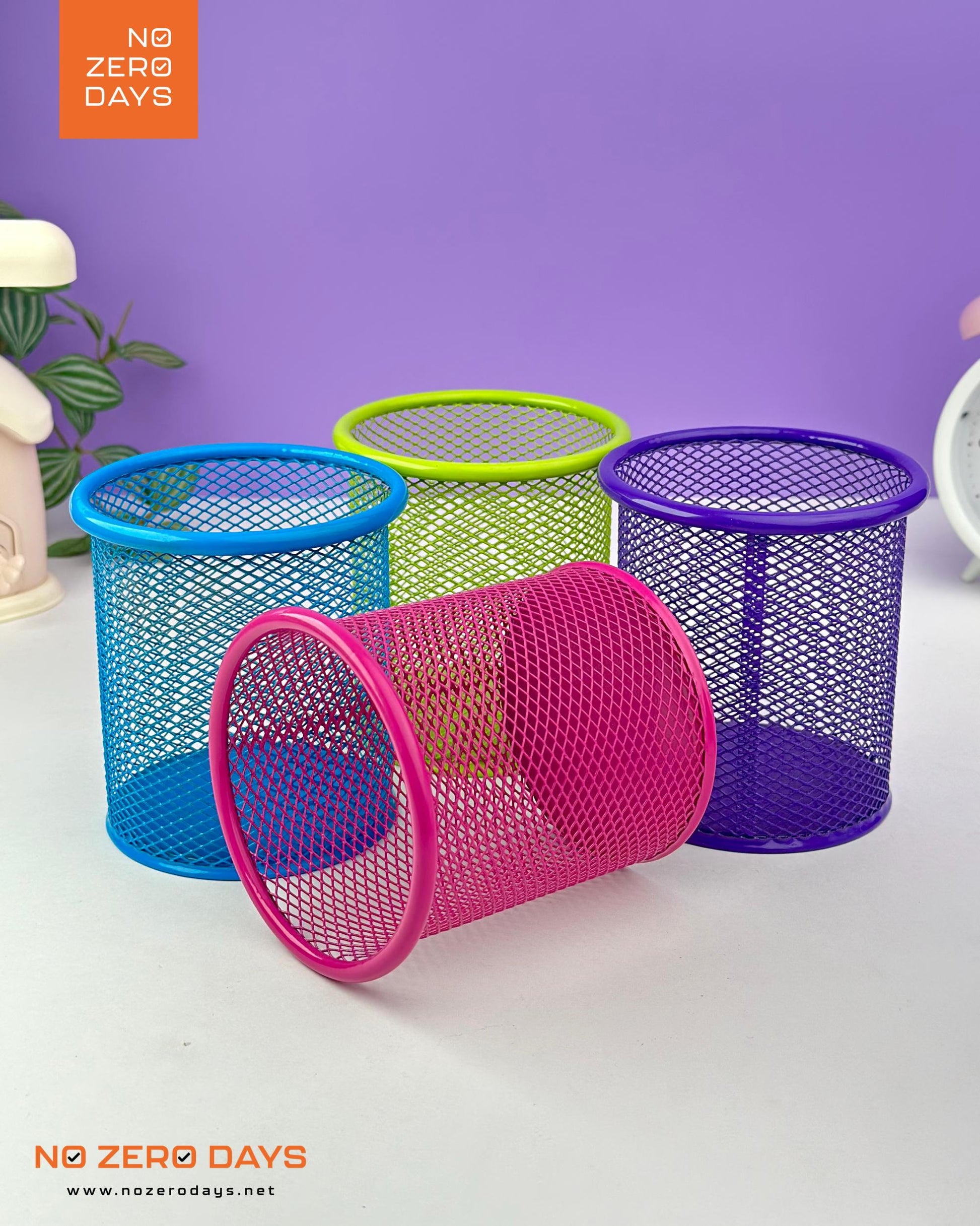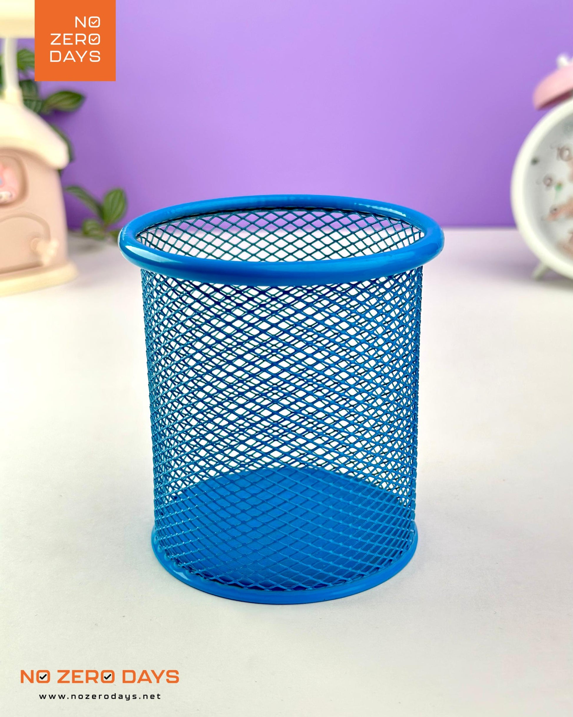 كوب أقلام معدن شبك دائري - أزرق