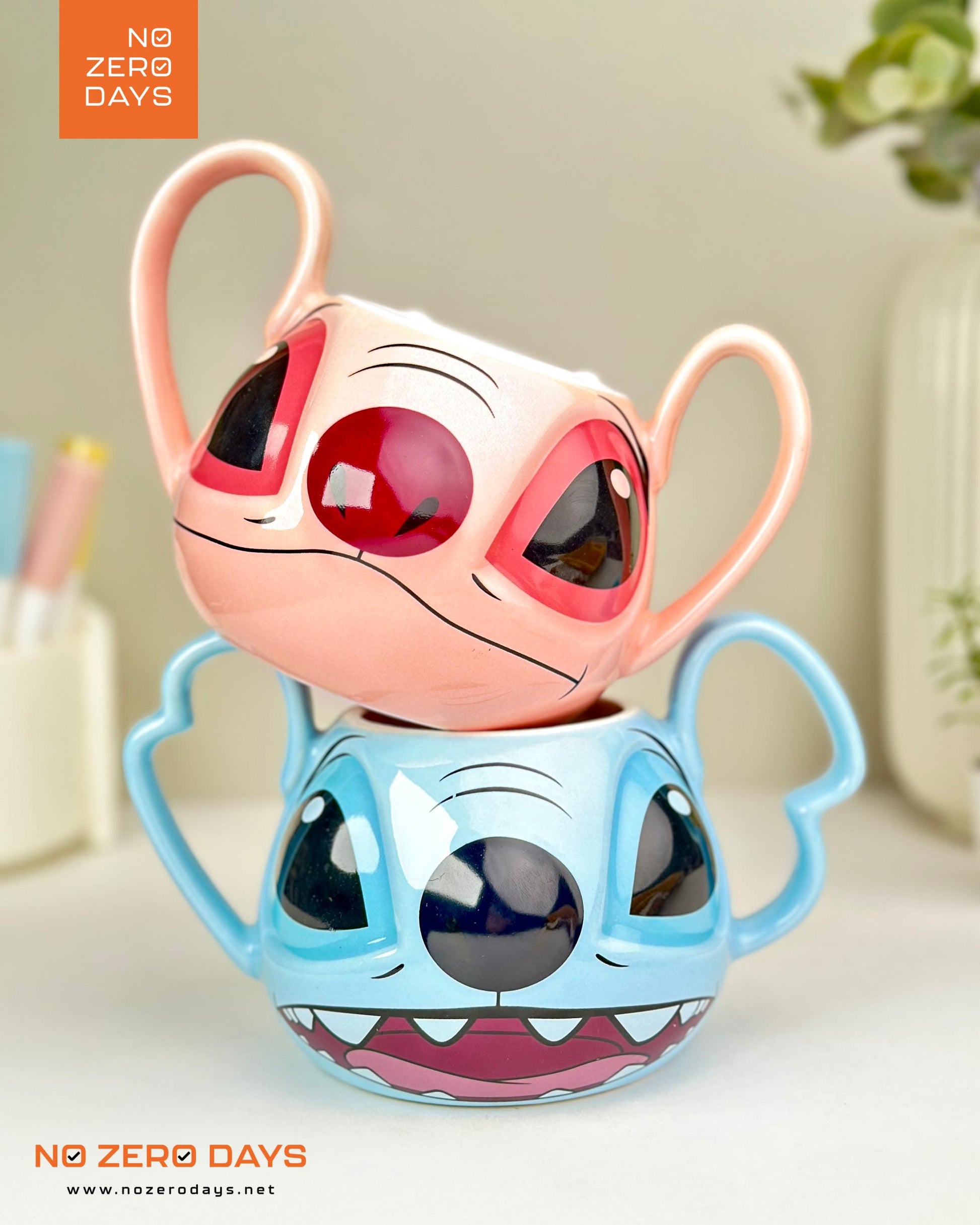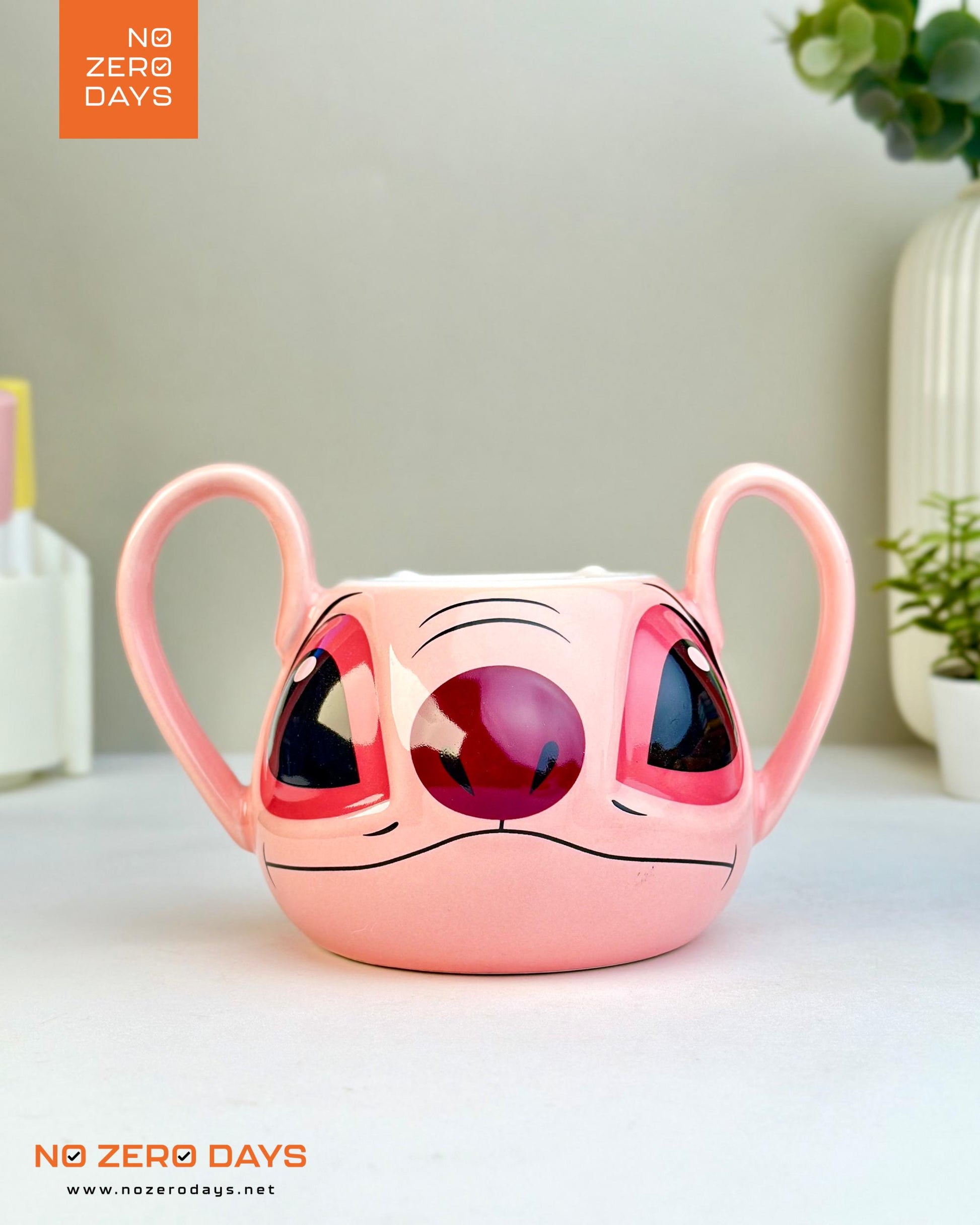 مج سيراميك مجسم ٢ يد - ستيتش بينك