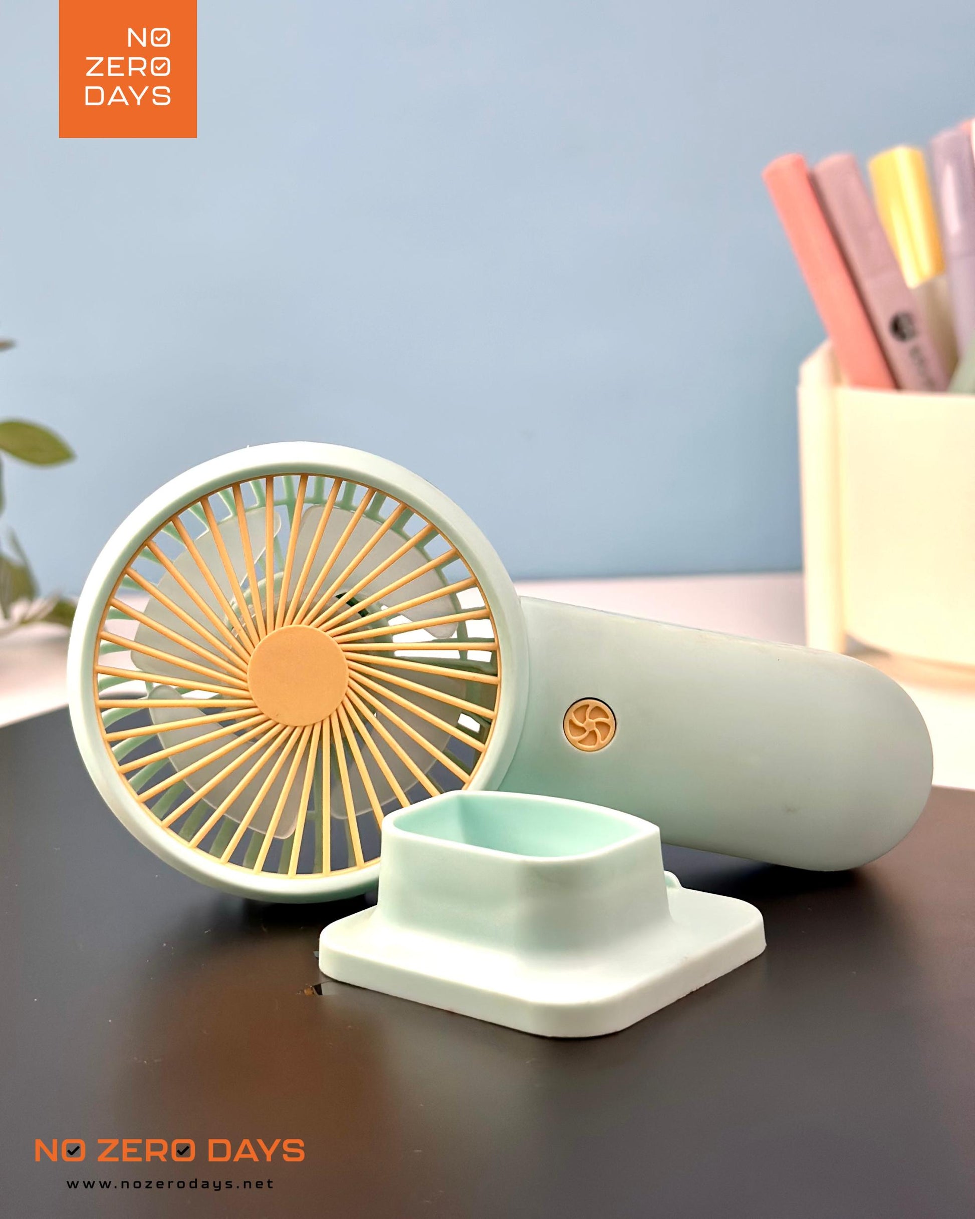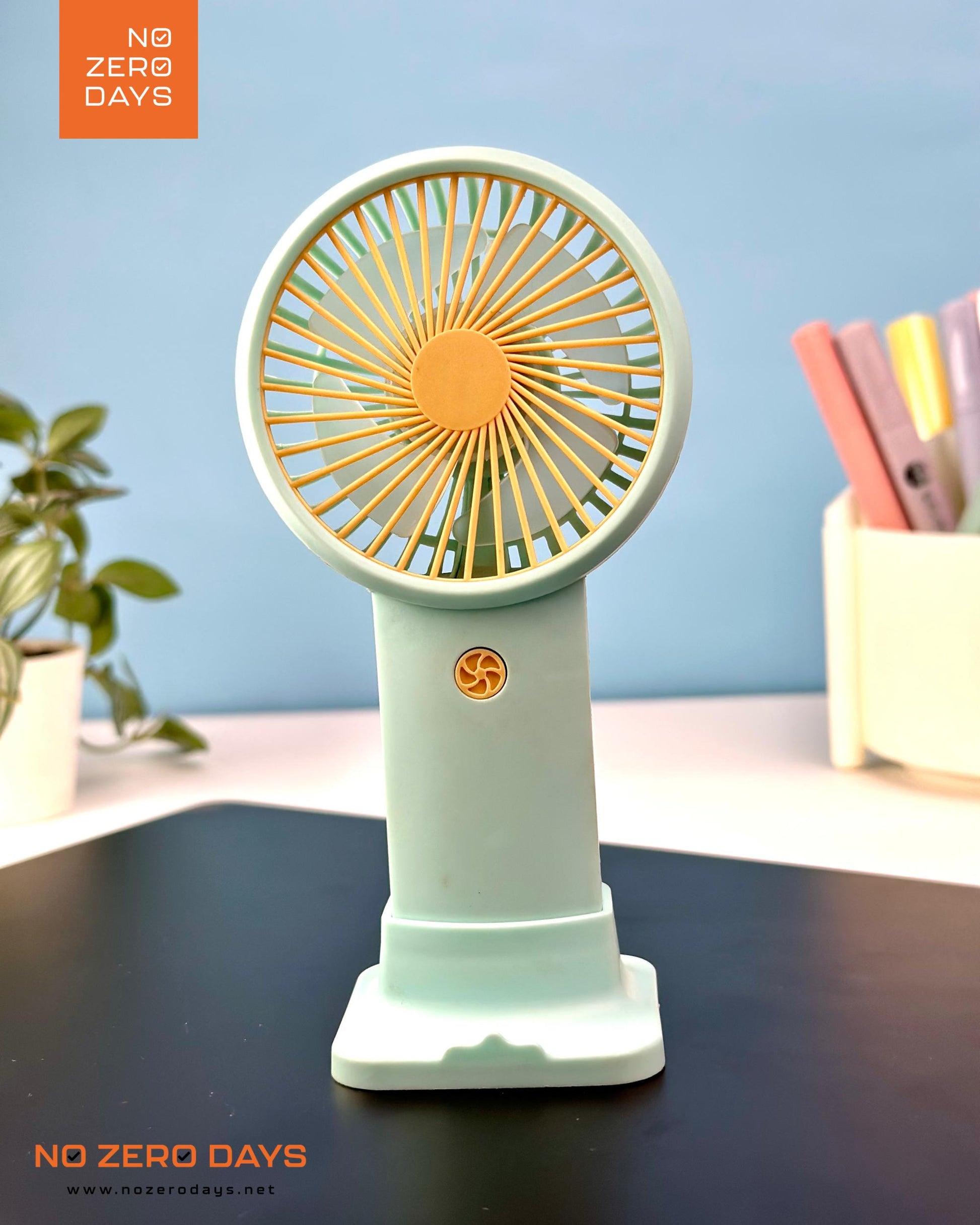 مروحة يد شحن مع هولدر للموبايل - أخضر مينت