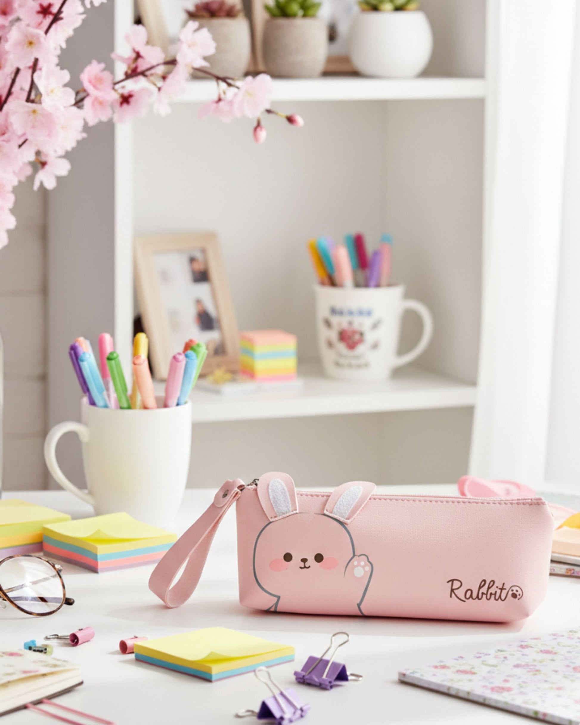 مقلمة جلد شكل أرنب - بينك