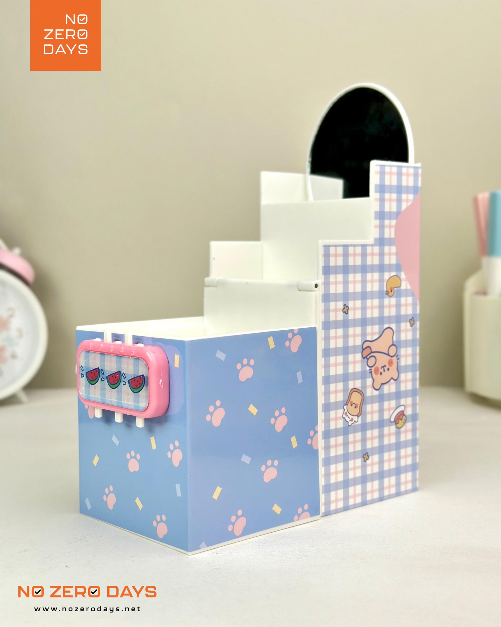 منظم مكتب بلاستيك بمراية وقفل