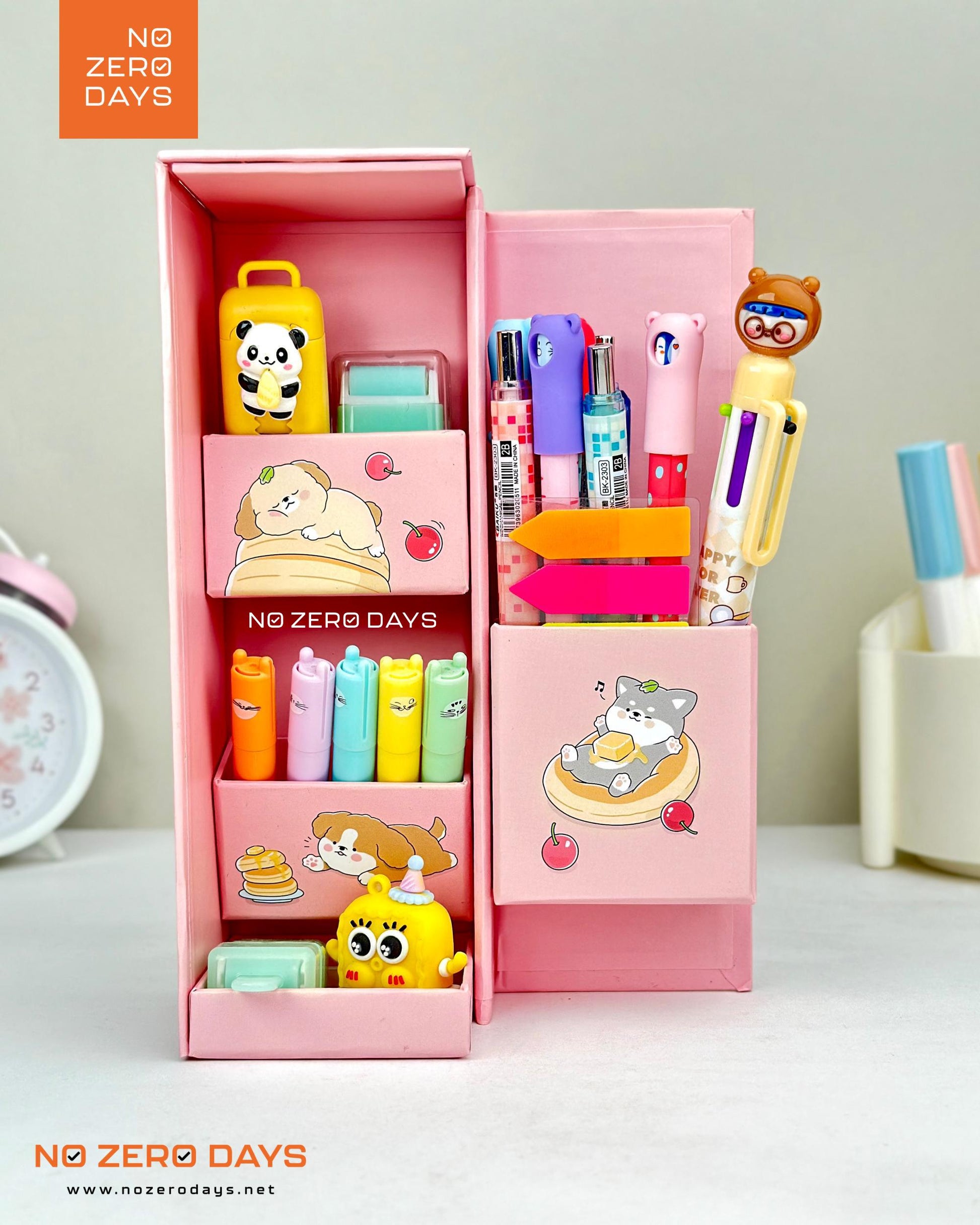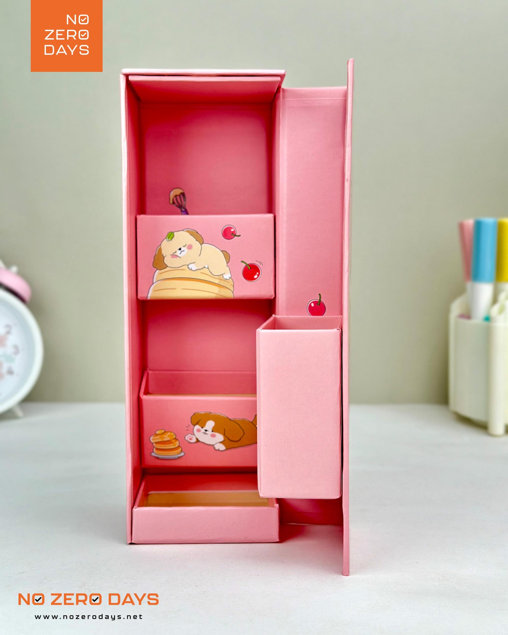 منظم مكتب كرتون مقوى - بينك