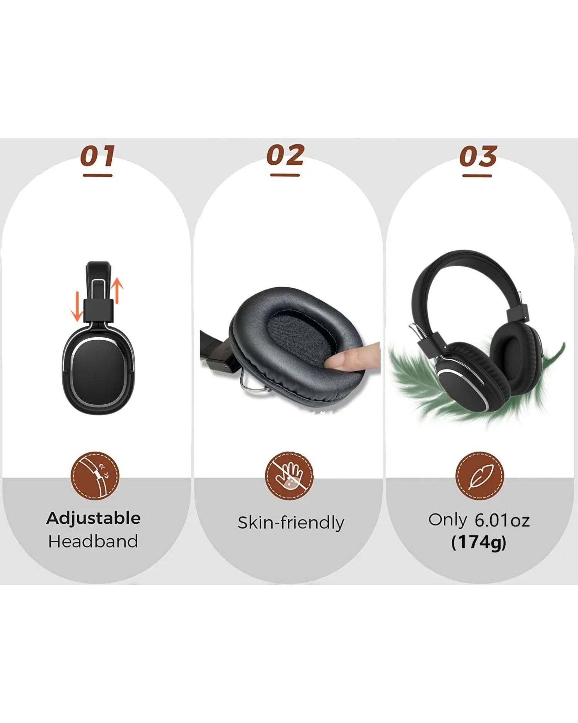 - تصميم مريح بوسائد أذن ناعمة مع رأس قابل للتعديل لراحة طويلة الأمد